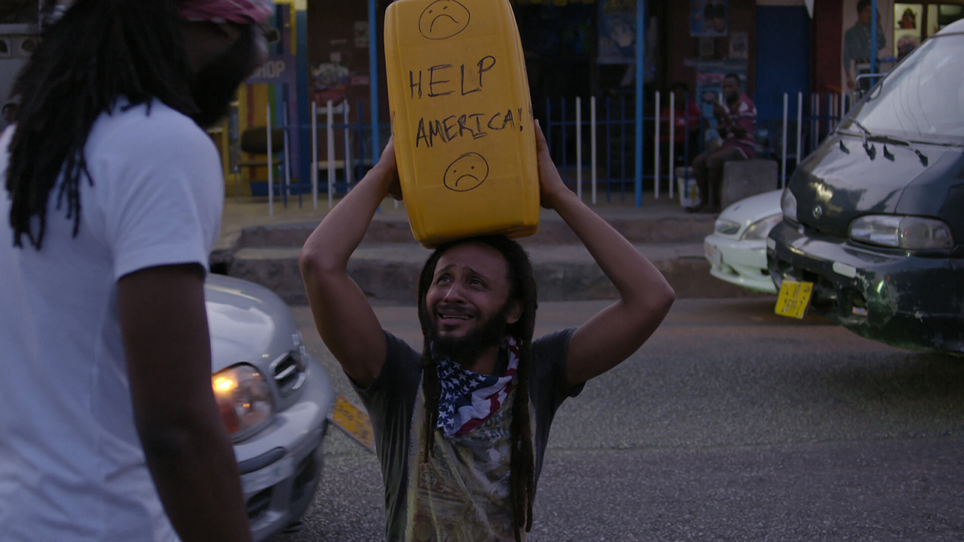 Deux amis collectent del’argent dans les rues d’Accra pour les États-Unis. Est-ce une blague, une provocation politique ou peut-être une prophétie? Comment voit-on les évolutions en cours et le changement des valeurs du point de vue du continent africain? Comment s'y opposer et y répondre? Les nouvelles visions d’avenir peuvent-elles devenir les réalités globales de demain? Deux cinéastes suisses, accompagnés de six musiciens du Ghana, vont au fond de ces questions.